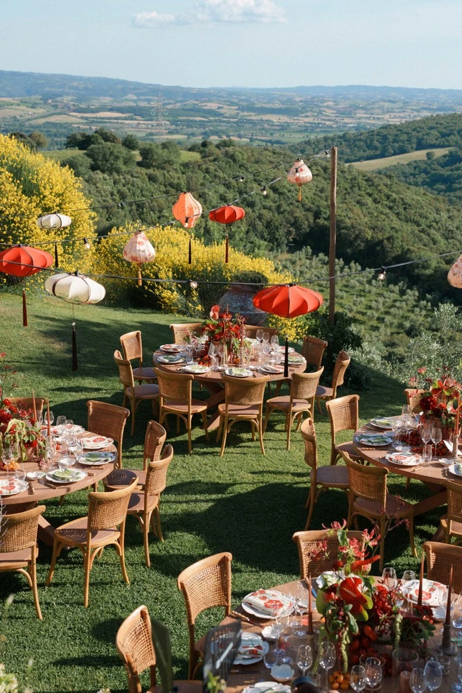 Italian gardens, stone-paved squares, and terraces provide idyllic settings for both ceremonies and receptions. Guests can stroll through the village, enjoying views of vineyards and olive groves, or gather in the central piazza for intimate cocktail hours. The combination of historical authenticity, modern luxury, and Tuscan landscapes ensures a wedding at Il Borro is unforgettable, blending charm with refined exclusivity.