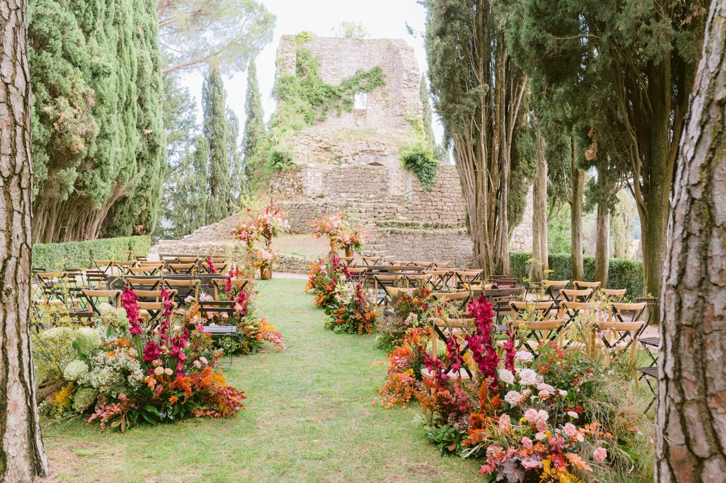 Couples can exchange vows in the castle's gardens or within its historic walls, followed by a reception featuring organic Tuscan cuisine and wines produced on-site. With accommodations for up to 30 guests, including suites and a two-bedroom villa, Castello di Vicarello offers an exclusive and unforgettable wedding in a Tuscan castle experience.