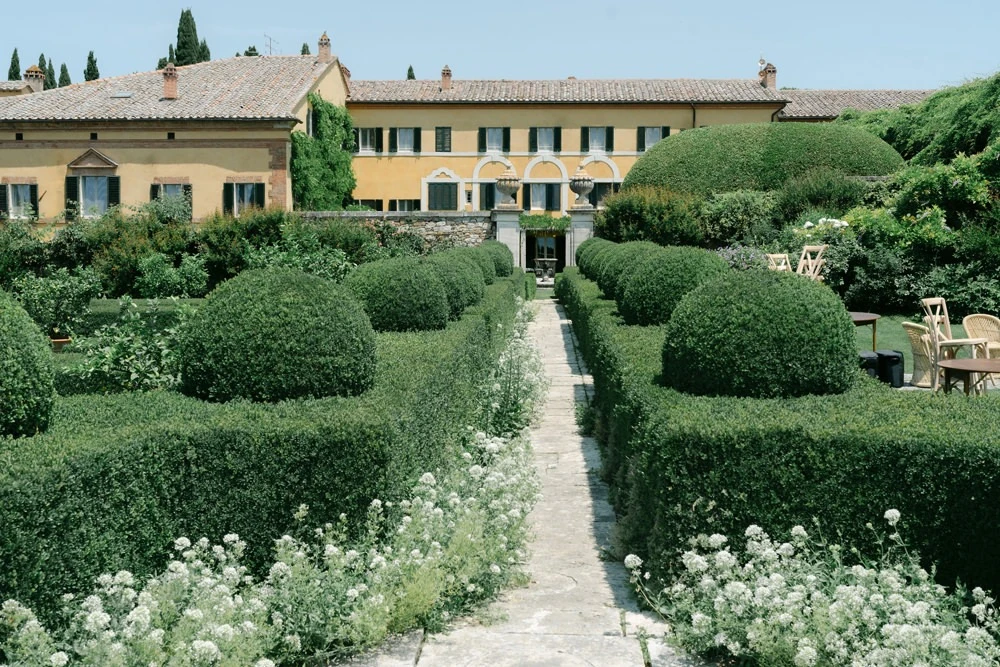 La Foce, a restored 15th-century villa, is perched on the Tuscan hills, offering sweeping views of Val d'Orcia and its iconic cypress-lined roads. The villa's gardens, designed with formal symmetry and extensive terraces, provide a breathtaking setting for ceremonies, photography, and celebrations.