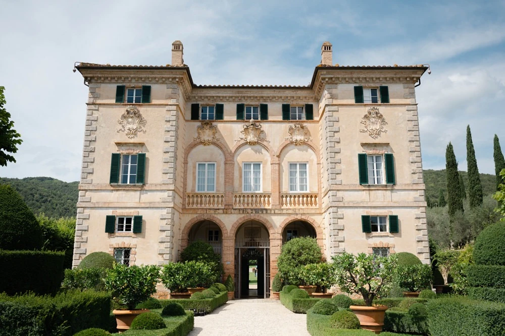 Nestled in the rolling hills of Chianti, Villa Il Palagio is the stunning 16th-century home of Sting and Trudie Styler, an estate of approximately 350 hectares of vineyards, olive trees, woodlands and fruit orchards. Between its beautifully restored main villa and several charming guesthouses, it offers both intimacy and grandeur for weddings.