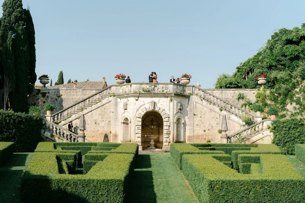 Al fresco dinners take place under linden trees or along terraces with panoramic views, while the grand travertine staircase becomes a focal point for entrance processions or cake cutting. La Foce combines history, elegance, and dramatic scenery, creating an extraordinary canvas for weddings of all sizes. Guests are immersed in Tuscan beauty, from the gardens to the villa's interiors, experiencing a celebration steeped in romance and sophistication.