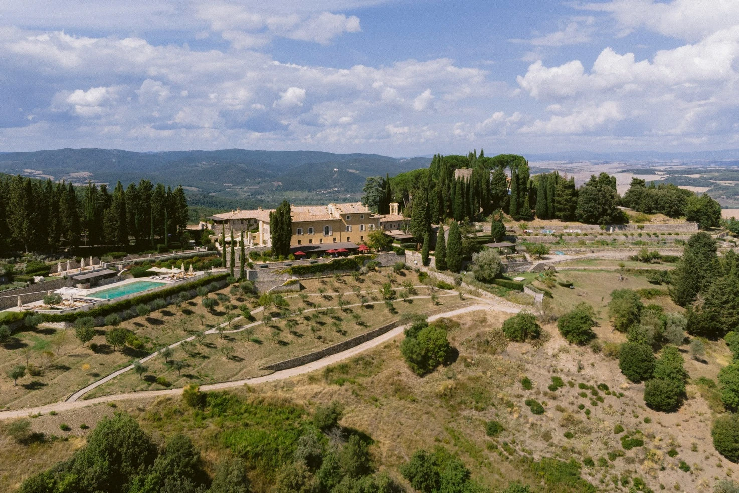 Nestled in the heart of Montalcino and the UNESCO-listed Val d'Orcia, Castiglion del Bosco is an 800-year-old estate blending medieval charm with modern luxury. Originally a fortress and later transformed into a world-class resort by the Ferragamo family, the estate encompasses castle ruins, a historic church, and a quaint village at its heart, offering an authentic Tuscan experience. Its surrounding vineyards, rolling hills, and olive groves create a painterly backdrop for any celebration, making it one of the most stunning wedding venues with vineyard Tuscany has to offer.