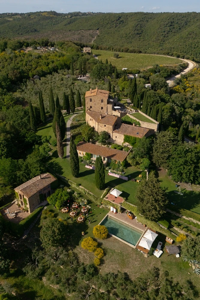 Castello di Vicarello Perched atop the Tuscan hills in the Maremma region, Castello di Vicarello is a 12th-century castle offering an intimate and luxurious setting for weddings. Surrounded by organic vineyards, olive groves, and lush gardens filled with lavender and roses, the castle provides a romantic backdrop for ceremonies and receptions.