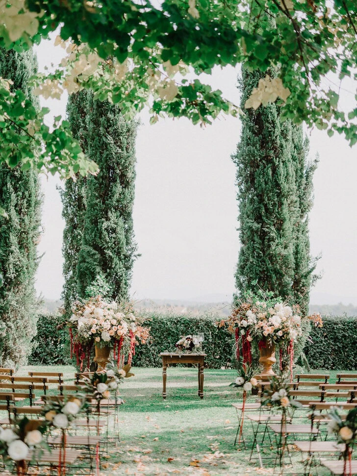 Tuscany embodies the quintessence of Italian romance: rolling hills, vineyards, olive groves, and historic estates set against breathtaking landscapes. Each villa or borgo offers a unique combination of elegance, history, and charm, perfect for creating a romantic wedding in Tuscany that is both intimate and grand.