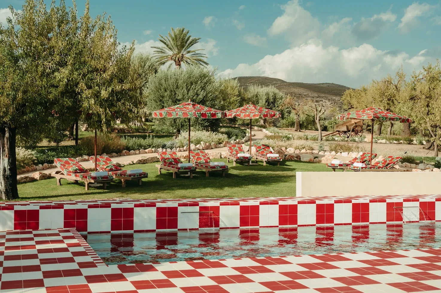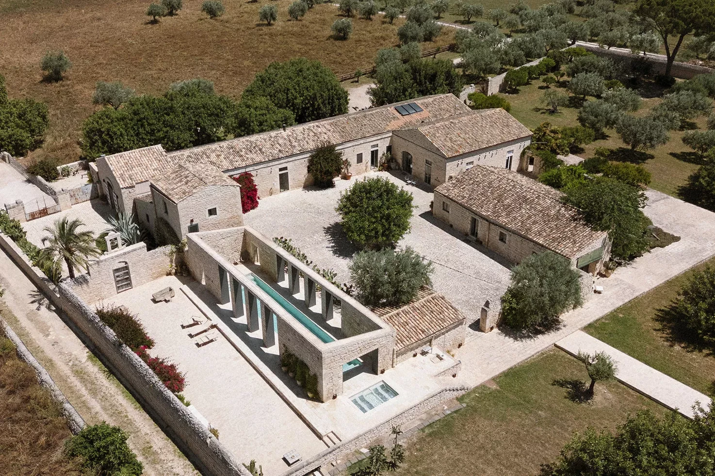 Braccialieri, a restored 1800s estate in the Val di Noto, blends luxury with Sicilian authenticity. Featuring three suites and six eco-villas accommodating up to 28 people, it offers outdoor spaces including a Noto stone piazza, an 1800s Baglio, expansive green areas, and an iconic red-and-white checkered pool, perfect for relaxed and fun pool parties, making it a popular choice for Gen Z couples planning modern Italian luxury weddings.