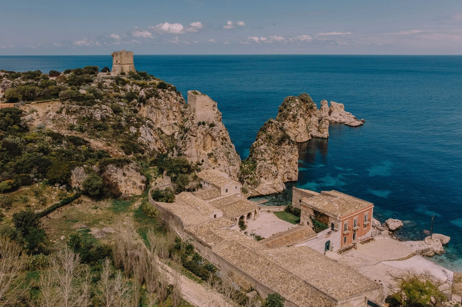 Tonnara di Scopello, a historic 13th-century fishing village, sits right on the sea and offers breathtaking views. The property includes 15 apartments accommodating up to 55 guests, with a maximum of 80 for events. Its outdoor spaces, including the Belvedere, the Terrazza delle Ancore and the Baglio make it perfect for memorable celebrations.