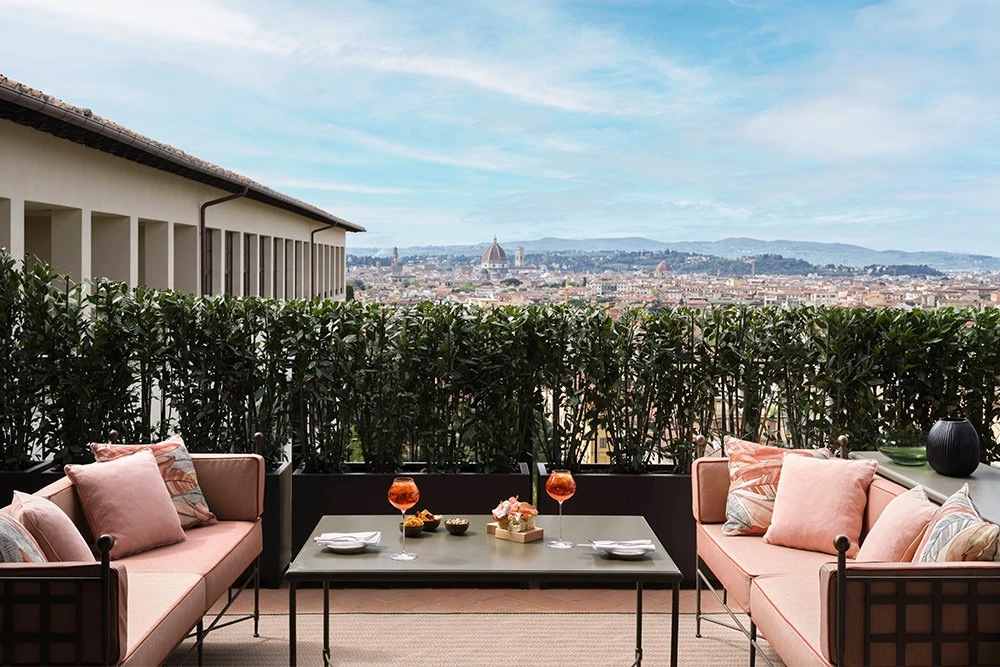 The hotel features 83 elegantly furnished rooms and suites, combining Renaissance art with modern Italian design.