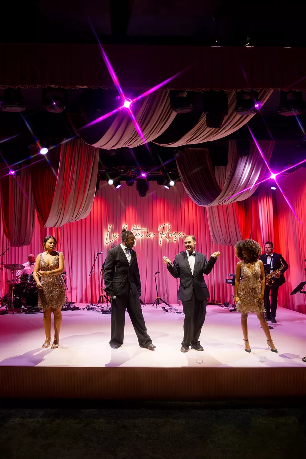 For live show bands, pricing depends on the size and composition of the group — from compact setups with DJ, ½ singers, sax or percussionists, to large bands featuring multiple live performers. Italian show bands typically start around €10,000+, while international artists can range from €20,000 to €30,000 and beyond, excluding travel and their technical rider.